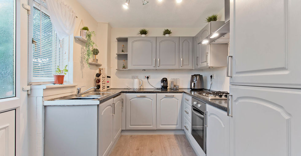 Attractive dining kitchen with garden access& integrated fridge freezer, cooker & hood